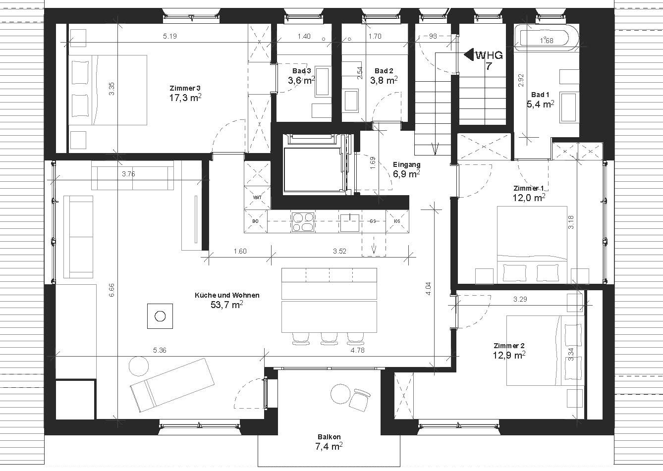 drei 3.5 Zimmer- und vier 4.5 Zi-Wohnungen |