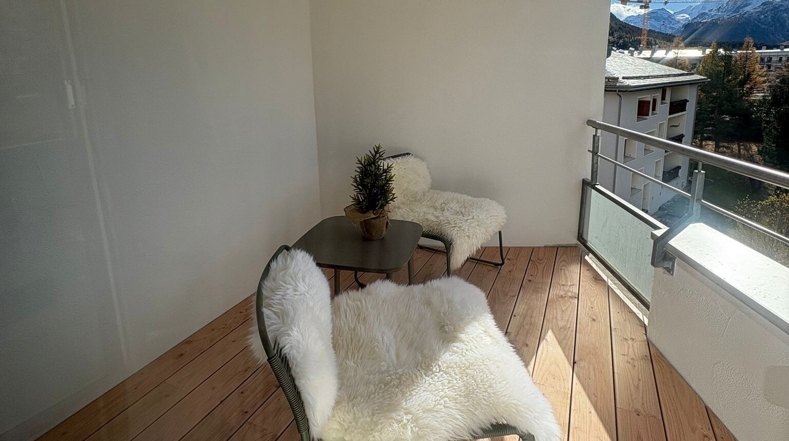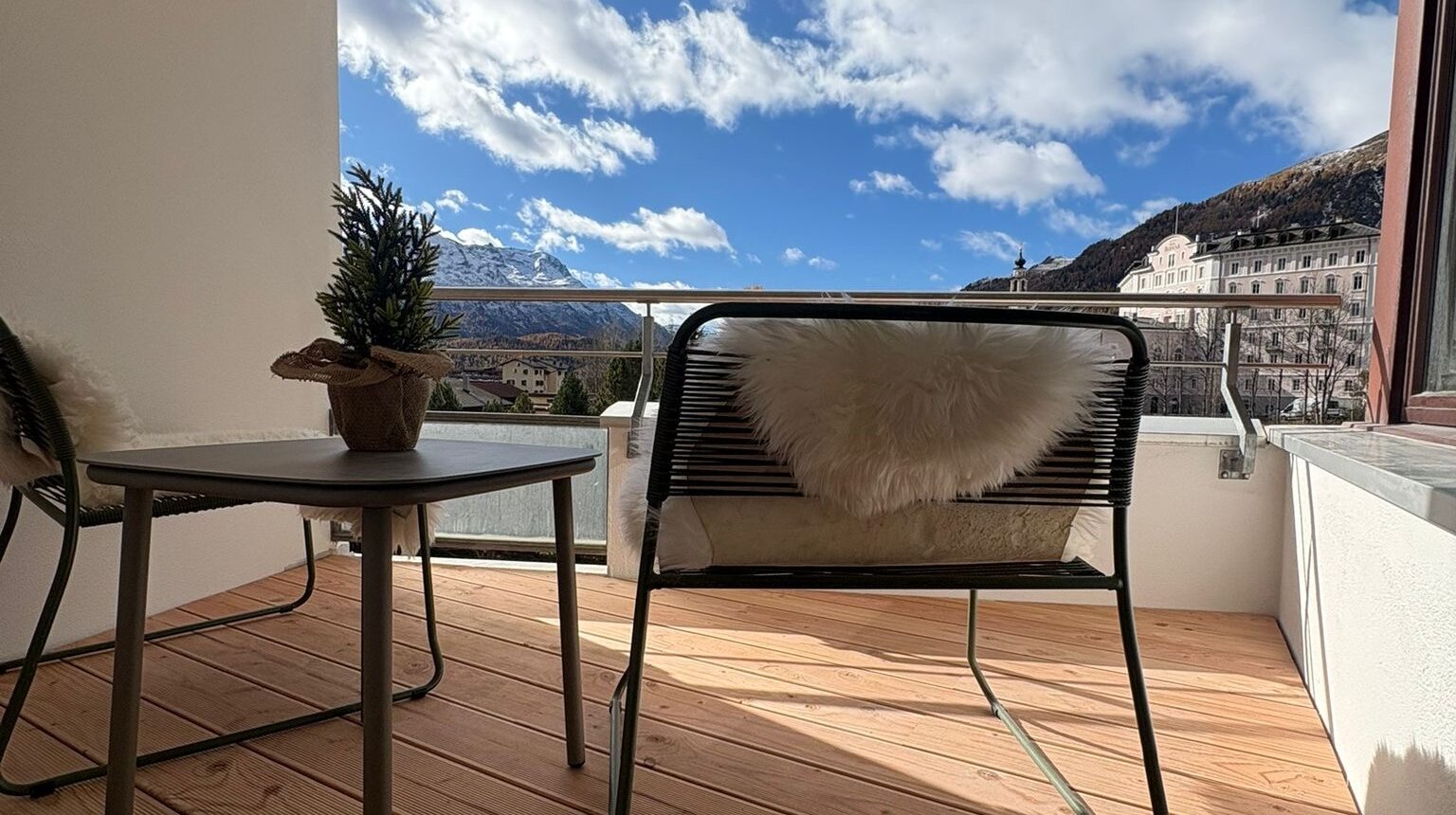 Der Bahnhof, das Spital, die Loipe, die Wander- und Velowege sowie die Einkaufsläden sind nur einen Katzensprung entfernt. Die Anbindung ans Skigebiet Corviglia-Marguns ist sowohl mit dem Bus wie auch mit der Bahn gegeben.