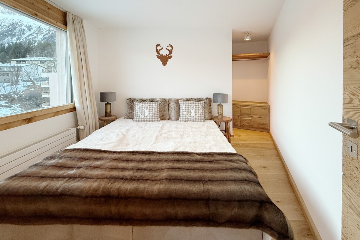 Die Nasszelle verfügt über eine Walk-in Dusche und ist hell gestaltet. Die Wohnung hat zwei schöne Doppelschlafzimmer mit toller Aussicht.