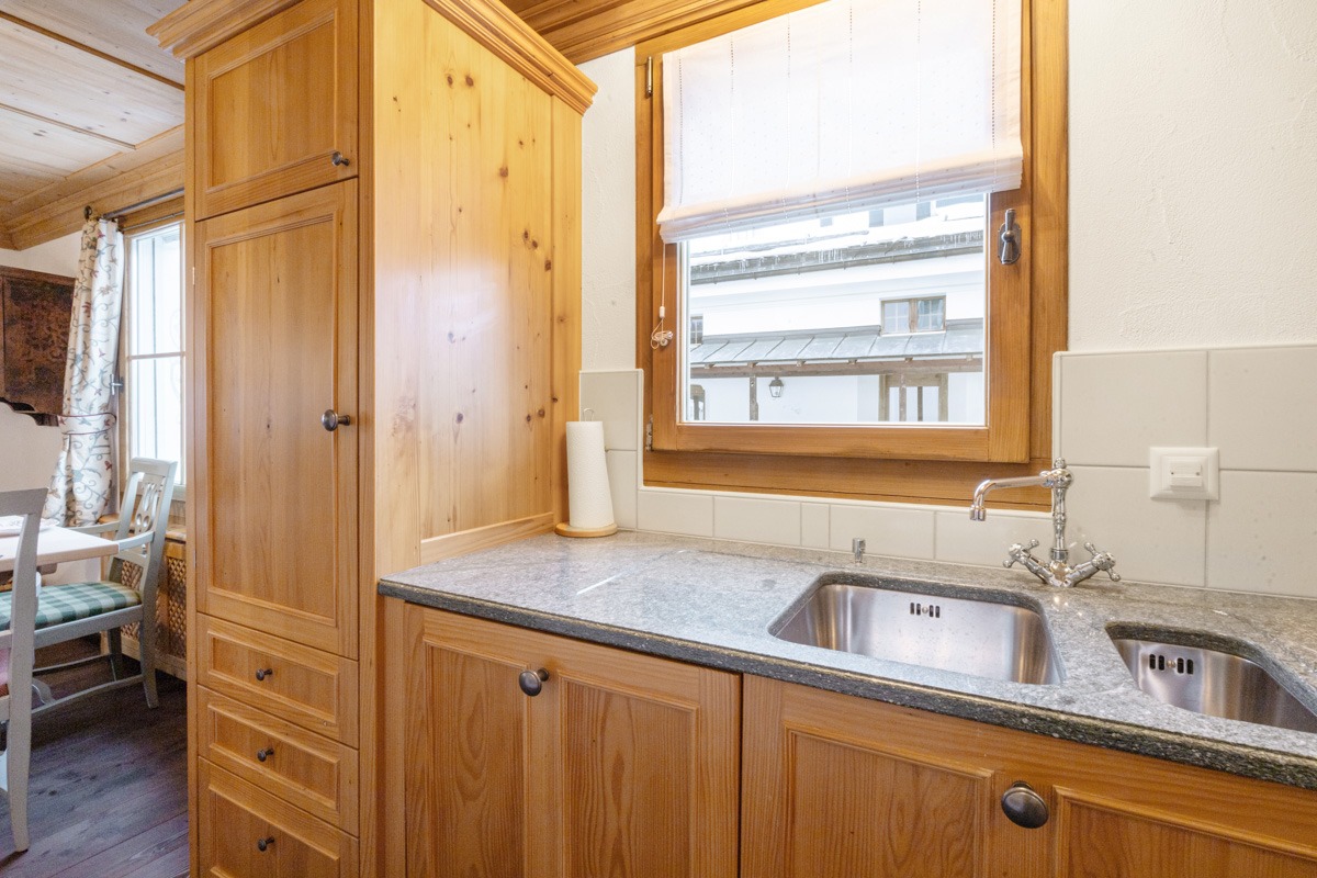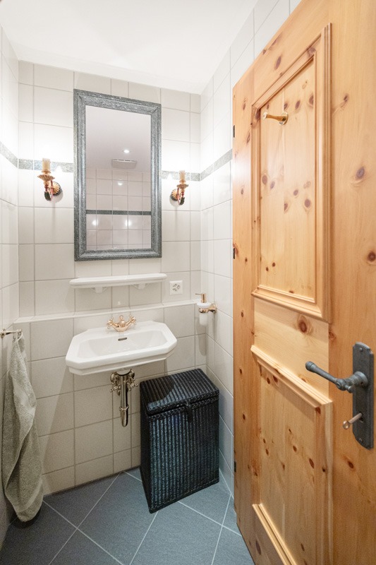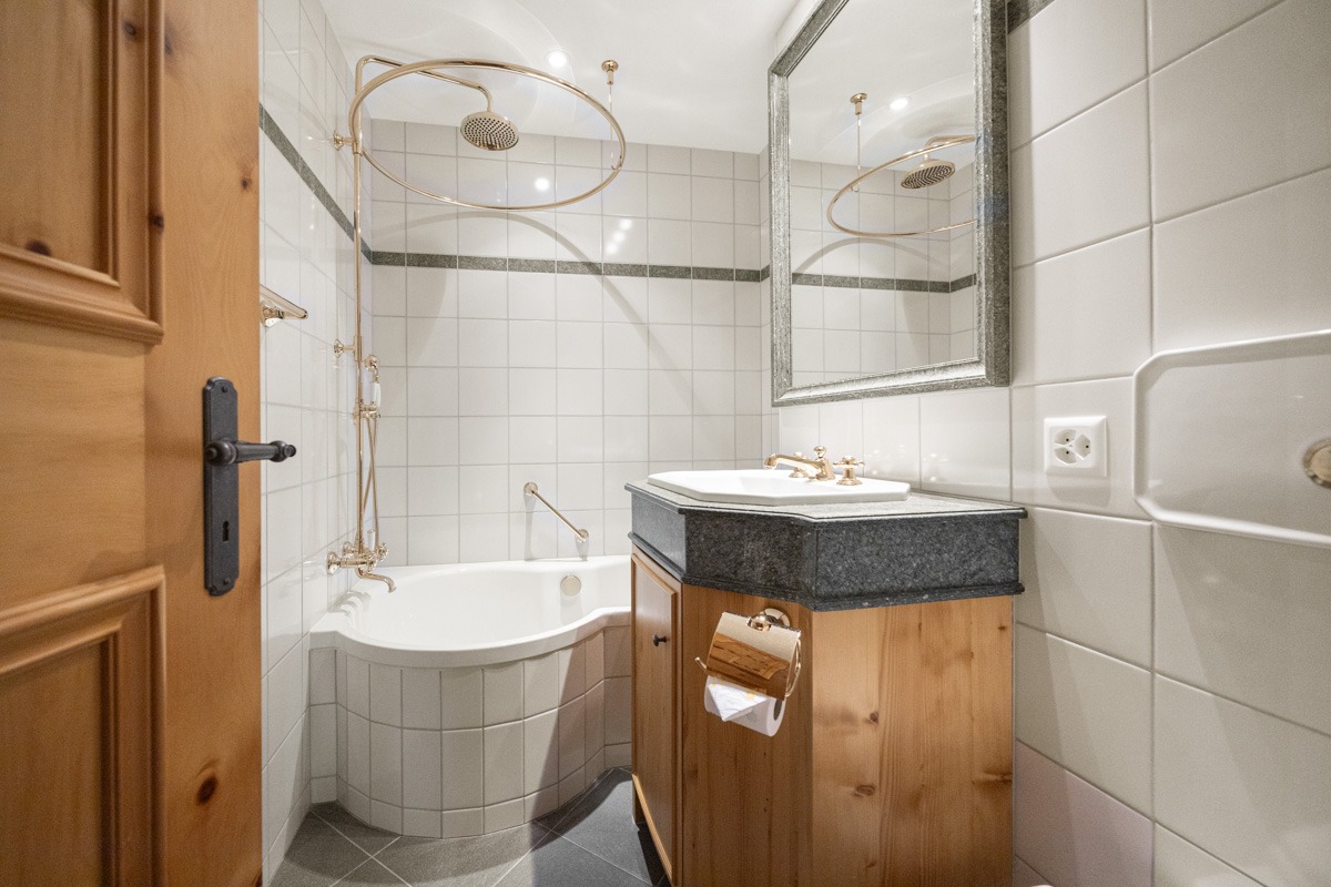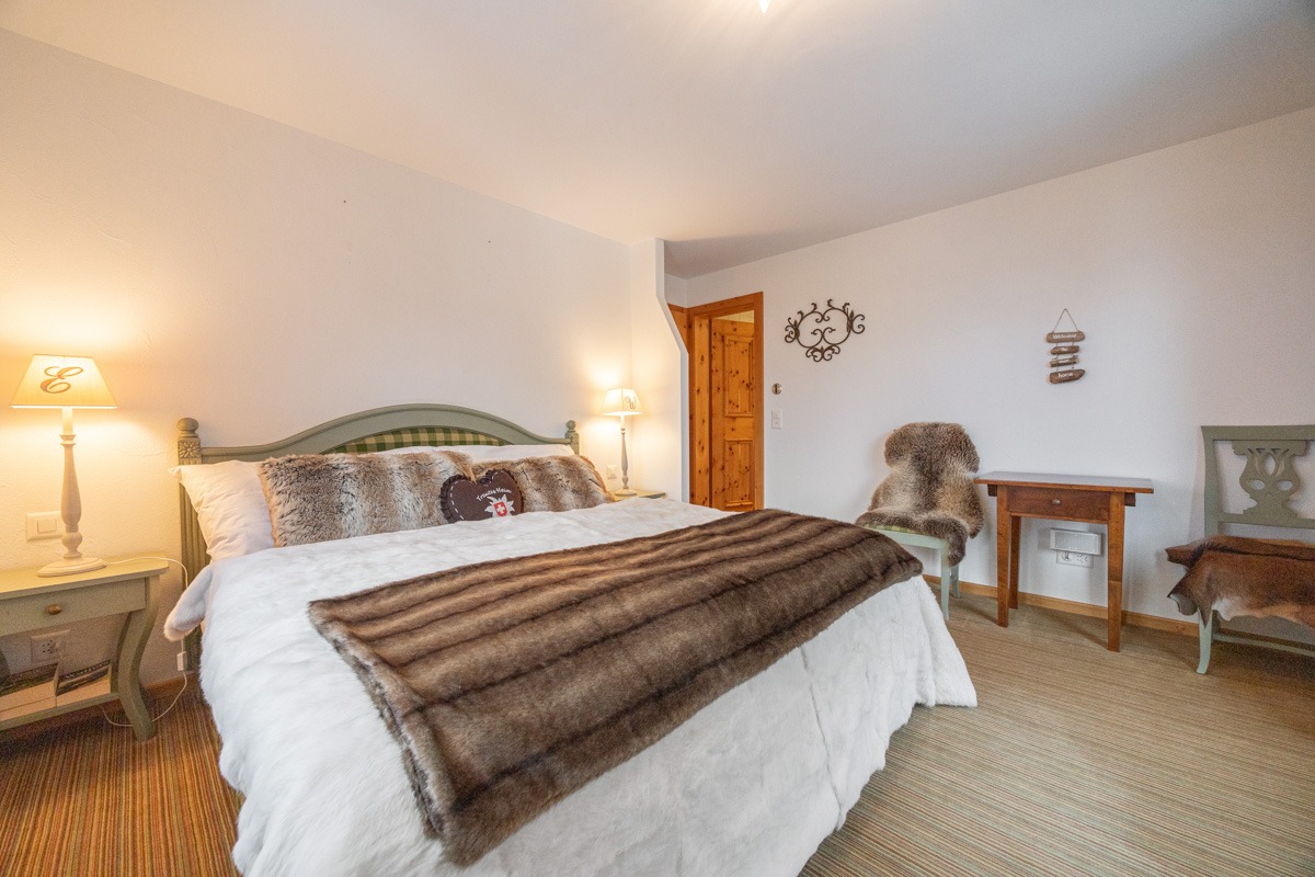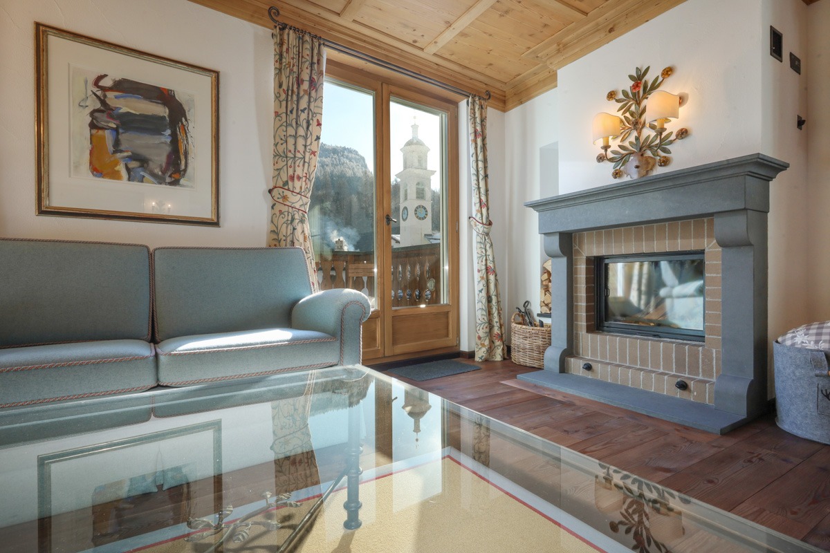 Das Wohnzimmer besticht mit einer Kassettendecke aus Arvenholz sowie einem stilvollen Kamin. Das TV-Gerät ist unauffällig hinter einem Gemälde eingebaut. Es sind sehr viele Einbauschränke vorhanden. Im Schrank des zweiten Schlafzimmers sind bereits Massnahmen getroffen, um ein Klappbett einbauen zu können. Die beiden Nasszellen sind stylisch und hochwertig ausgestattet.