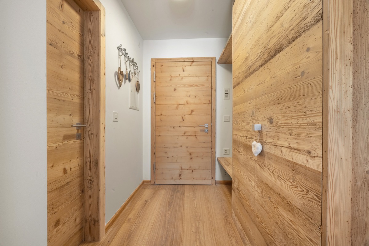 Die Chesa Funtauna hat ein grosszügiges Entrée, welches zur Waschküche und zum Keller führt. Mit dem Lift fahren Sie bequem zur Wohnung.