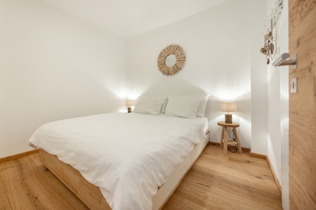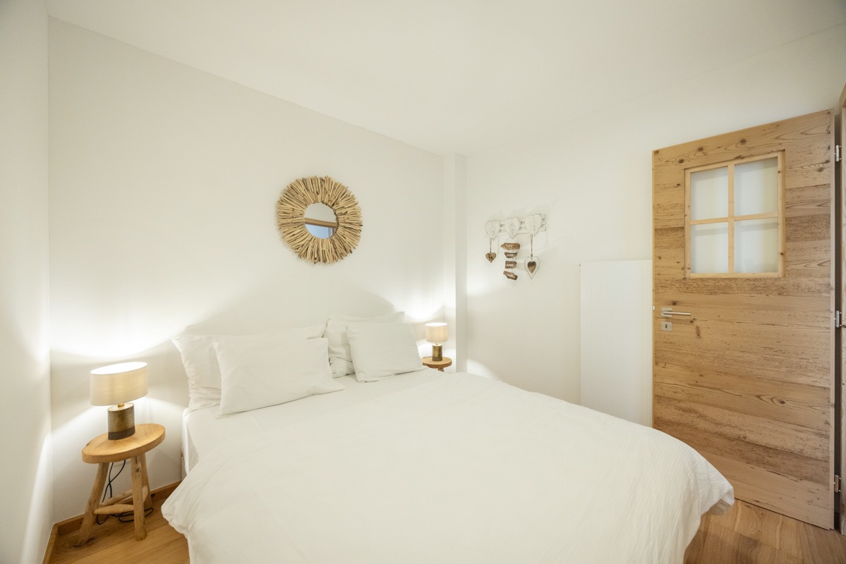 Das Schlafzimmer hat ein Doppelbett mit den Massen 160x200. Das Bettsofa hat auch eine Schlaffläche von 160x200. Die Möblierung ist neu und exakt auf die Wohnung zugeschnitten. Die Ausstattung in der Küche ist komplett mit stylischem Hotelgeschirr, Nespressomaschine, und Smart-TV mit Replay Funktion.